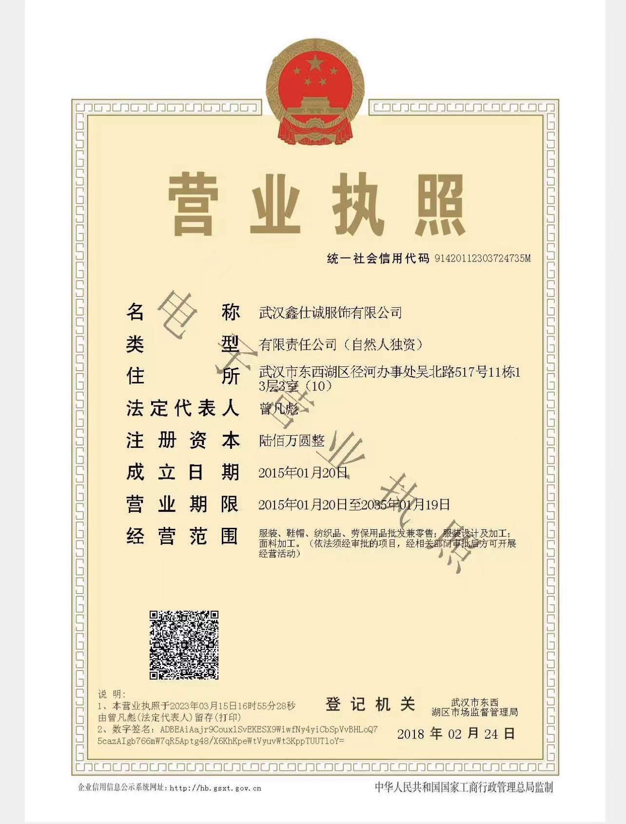 武漢鑫仕誠服飾有限公司是一家集設計、生產、銷售于一體的專業性服裝企業。多年來專注于西服、襯衣、T恤、校服、工程服、保安服、保潔服、酒店服、航空服、沖鋒衣等系列產品的設計、生產與銷售。 公司現有員工百余人,通用設備一應俱全,并引進了國外先進的電腦上袖機、開袋機、電腦程控定型機、電腦鳳眼機...